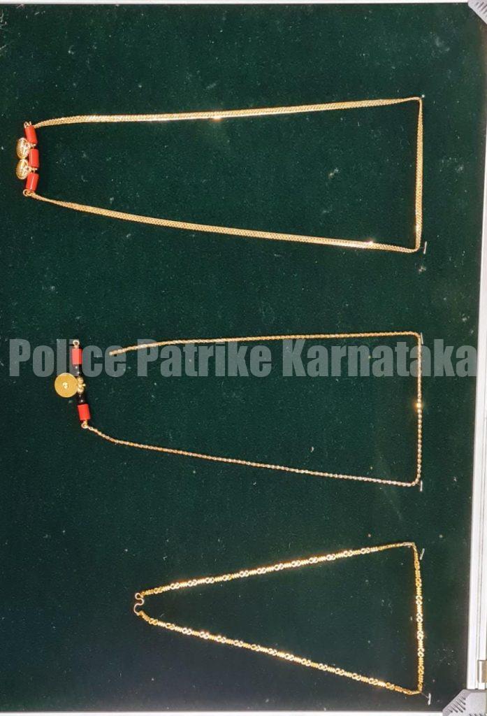 ಆರೋಪಿಗಳಿಂದ ಸುಲಿಗೆ ಮಾಡಿದ್ದ 90 ಗ್ರಾಂ ತೂಕದ ಚಿನ್ನಾಭರಣ, 2 ಸ್ಕೂಟರ್ ಮತ್ತು 3 ಮೊಬೈಲ್ ಫೋನ್ ಸಹಿತ ಒಟ್ಟು 5 ಲಕ್ಷ ರೂ. ಮೌಲ್ಯದ ಸೊತ್ತುಗಳನ್ನು ವಶಪಡಿಸಿಕೊಳ್ಳಲಾಗಿದೆ. ಆಗಸ್ಟ್ನಲ್ಲಿ ಕದ್ರಿ ಪೊಲೀಸ್ ಠಾಣೆ ವ್ಯಾಪ್ತಿಯಲ್ಲಿ 2 ಸರ ಸುಲಿಗೆ ಮತ್ತು ಮಂಗಳೂರು ಗ್ರಾಮಾಂತರ ಠಾಣಾ ವ್ಯಾಪ್ತಿಯಲ್ಲಿ 1 ಸರ ಸುಲಿಗೆ ಪ್ರಕರಣ ದಾಖಲಾಗಿತ್ತು. ಈ ಪ್ರಕರಣದ ಆರೋಪಿಗಳ ಬಂಧನಕ್ಕೆ ಕಾರ್ಯಾಚರಣೆ ಆರಂಭಿಸಿದ್ದ ಸಿಸಿಬಿ ಮೂವರನ್ನು ಬಂಧಿಸುವಲ್ಲಿ ಯಶಸ್ವಿಯಾಗಿದ್ದಾರೆ. ಆರೋಪಿಗಳು ನಗರದ ಕಾರ್ ಸ್ಟ್ರೀಟ್ ಬಳಿ ಚಿನ್ನದ ಸರವನ್ನು ಮಾರಾಟ ಮಾಡಲು ಬಂದಾಗ ಖಚಿತ ಮಾಹಿತಿ ಮೇರೆಗೆ ಬಂಧಿಸಲಾಗಿದೆ ಎಂದು ಪೊಲೀಸರು ತಿಳಿಸಿದ್ದಾರೆ.