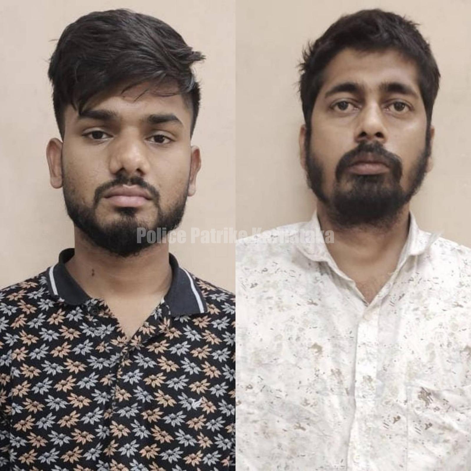 ಬಿಹಾರ ರಾಜ್ಯದ ಪಟ್ನಾ ಜಿಲ್ಲೆಯ ದೇವ್ ಹರ್ಷ(೨೦) ಹಾಗೂ ಬಿಹಾರ ನಳಂದಾ ಜಿಲ್ಲೆಯ ಚಂದನ ಕುಮಾರ್(೨೯) ಬಂಧಿತ ಆರೋಪಿಗಳು. ಇವರಿಂದ ೯೭ಸಾವಿರ ರೂ. ಮೌಲ್ಯದ ೧೦ ಮೊಬೈಲ್ ಸೆನ್, ೬೮,೦೦೦ರೂ. ಮೌಲ್ಯದ ೪ ಲ್ಯಾಪ್ಟಾಪ್ಗಳು ಹಾಗೂ ೪,೫೦,೦೦೦ರೂ. ನಗದು ವಶಪಡಿಸಿಕೊಳ್ಳಲಾಗಿದೆ.