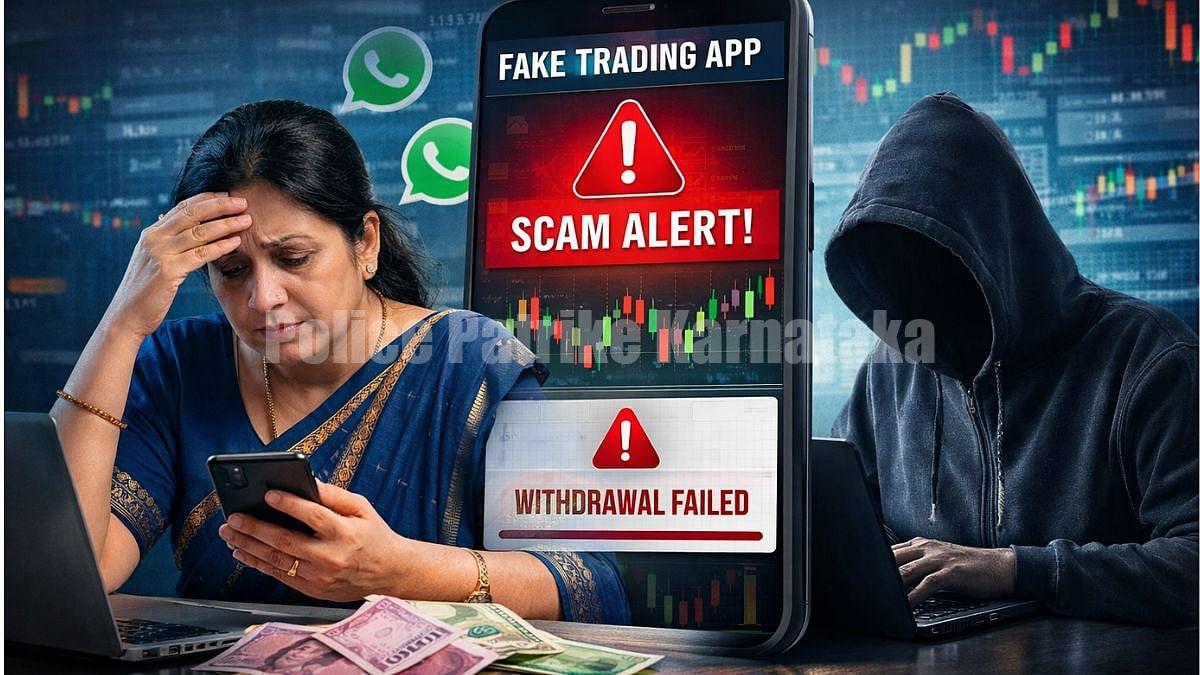 ಟ್ರೇಡಿಂಗ್ ಆ್ಯಪ್‌ನಲ್ಲಿ ಹೂಡಿಕೆ ಮಾಡುವ ನೆಪದಲ್ಲಿ ಮಹಿಳೆಯೊಬ್ಬರಿಂದ 11.75 ಲಕ್ಷ ರೂಪಾಯಿ ಆನ್‌ಲೈನ್ ಮೂಲಕ ವಂಚನೆ ನಡೆಸಿದ ಪ್ರಕರಣ ಉಡುಪಿ ಸೆನ್ ಅಪರಾಧ ಪೊಲೀಸ್ ಠಾಣೆಯಲ್ಲಿ ದಾಖಲಾಗಿದೆ.